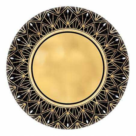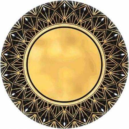 Emb. com 8 pratos de papel com 17cm de diametro na cor preto com a estrela em dourado metalizado (brilhante).