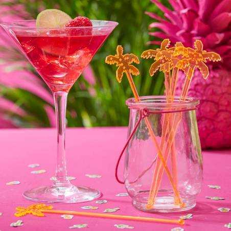 Emb. com 15 varetas de cocktail em acrilico na cor rosa com figura de Flamingo na extremidade. Tem cerca de 14cm de altura.