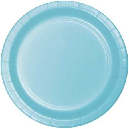 Emb. com 8 pratos Azul pastel em papel com 17.9cm de diâmetro. NOTA; as cores dos produtos em plástico podem divergir das cores dos produtos em papel.
