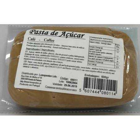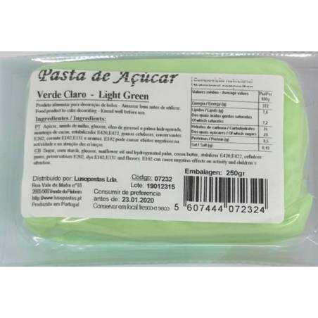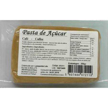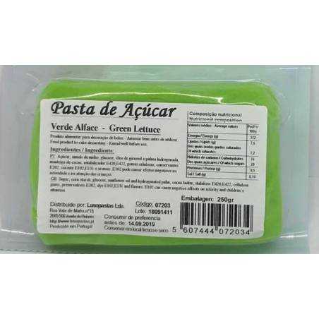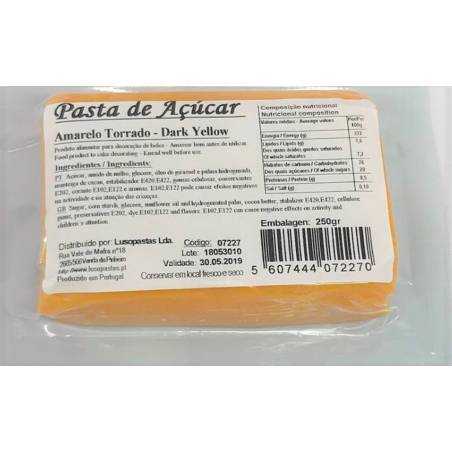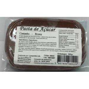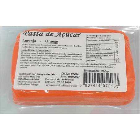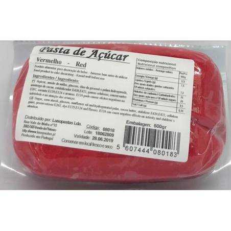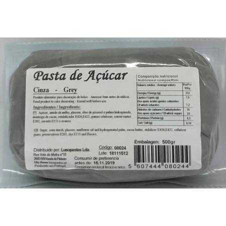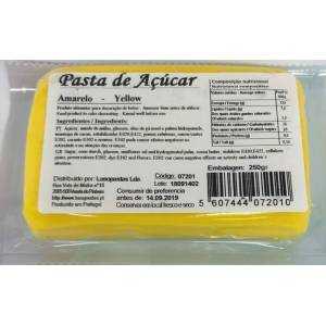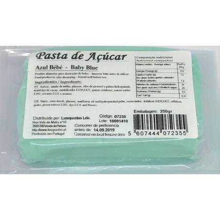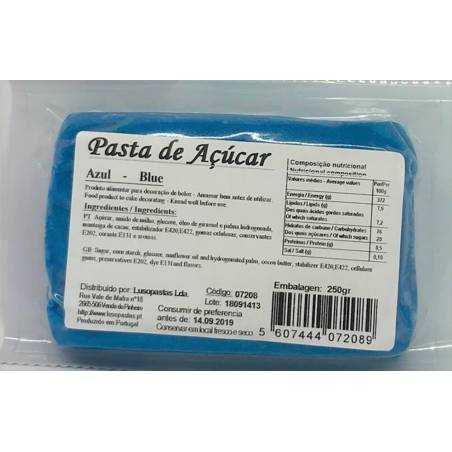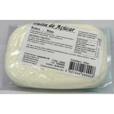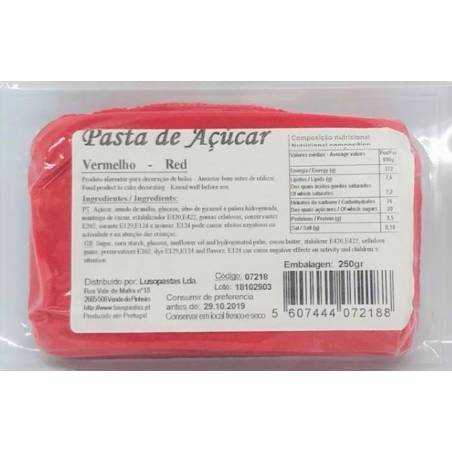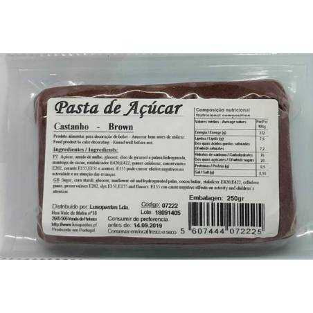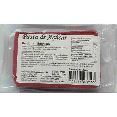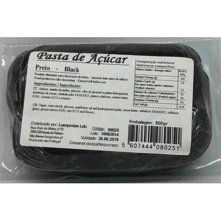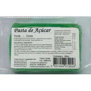 Emb. com 250gr de pasta de açúcar, ideal para decoração de bolos. Ingredientes: açúcar, amido de milho, glucose, gordura vegetal, gomas vegetais, estabilizador E420, conservantes E202, corante E155, E151 e aroma de(sugo/pastilha...