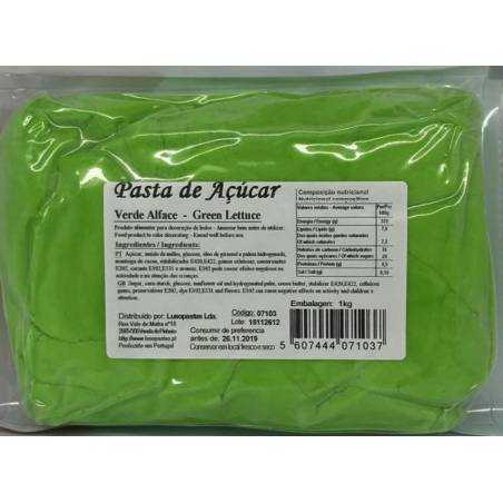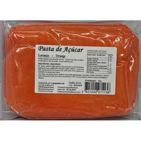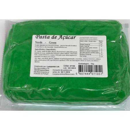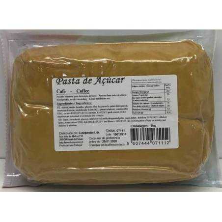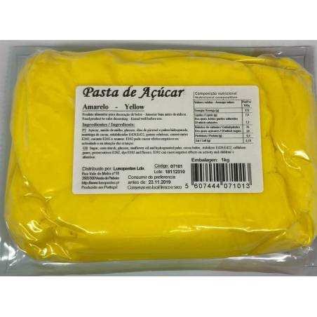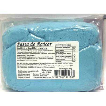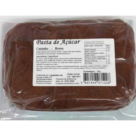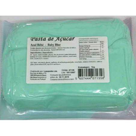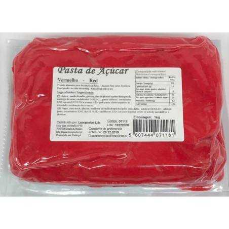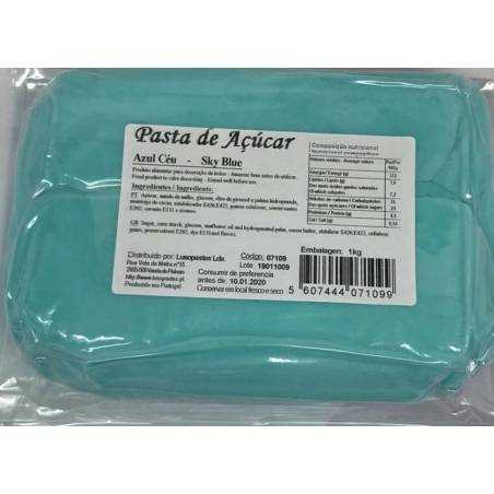 Emb. com 1kg de pasta de açúcar, ideal para decoração de bolos. Ingredientes: açúcar, amido de milho, glucose, gordura vegetal, gomas vegetais, estabilizador E420, conservantes E202, corante E155, E151 e aroma de(sugo/pastilha...
