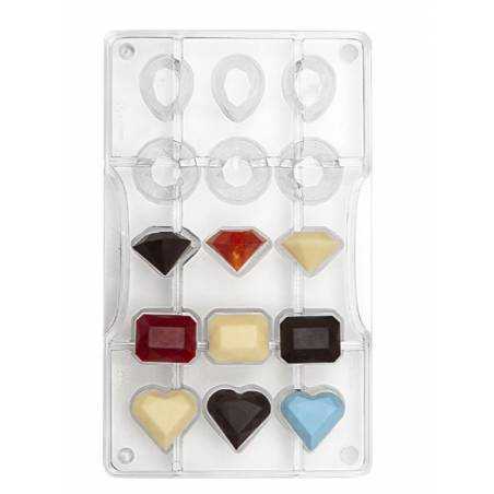 Molde em plástico do tema fundo do mar, com 11 cavidades, com tamanhos entre 4x8cm ou 7x7cm por 1cm de profundidade. Ideal para fazer chupas de chocolate, não pode ir ao forno.