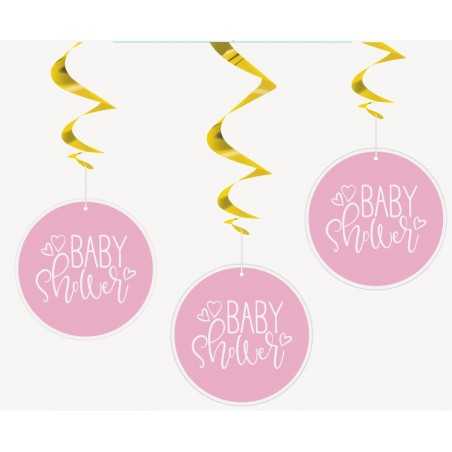 Emb. com um kit decorativo para mesa, do tema chá de bebé menina, inclui; - 1 centro de mesa principal com 32cm de altura com cascata em volta. - 2 centros de mesa com 17.7cm de altura. - 20 confettis recortados em cartão na forma de baby grow,...