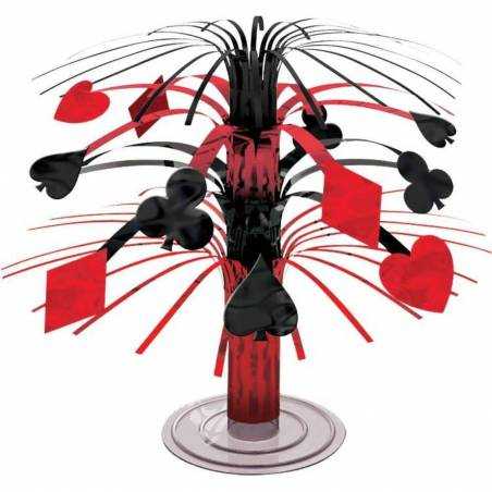 Emb. com um kit decorativo para mesa, do tema Casino este contêm; - 1 centro de mesa principal com 32cm de altura com cascata em volta. - 2 centros de mesa em forma de ficha/moeda com 17.7cm de altura. - 20 confettis recortados em cartão na...