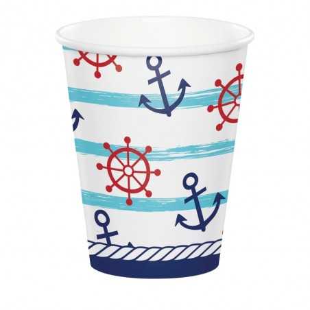 Emb. com 8 taças em papel/cartão com 9cm de diâmetro por 6cm de altura + 8 colheres transparentes do tema Marinheiro. Ideal para colocar gelado, pipocas, doces, batatas frita....