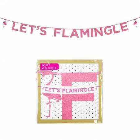 Emb. com uma faixa em papel com a palavra Flamingo Paradise (letras recortadas) e impressão de flamingo e flores com 1.35m de comprimento. Ideal para a decoração do seu espaço de festa.