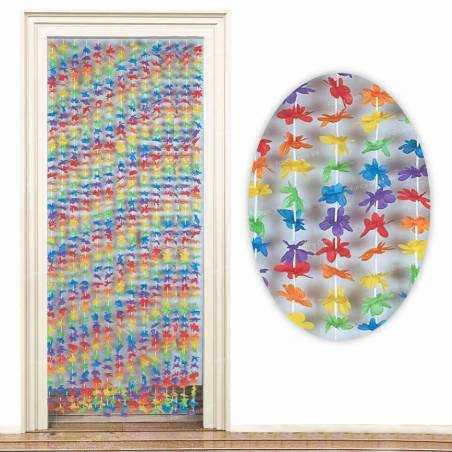 Emb. com 6 fios decorativos individuais do tema Hawai, cada fio tem 2.10cm de comprimento, ao longo do fio estão flores e dançarinas de hula (10cm de diâmetro) . Ideal para fazer uma cortina de entrada ou como decoração de teto do seu espaço.
