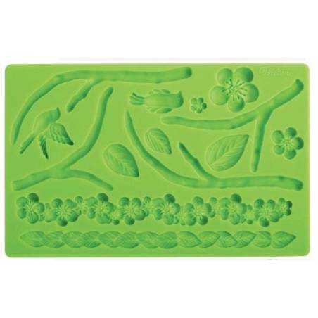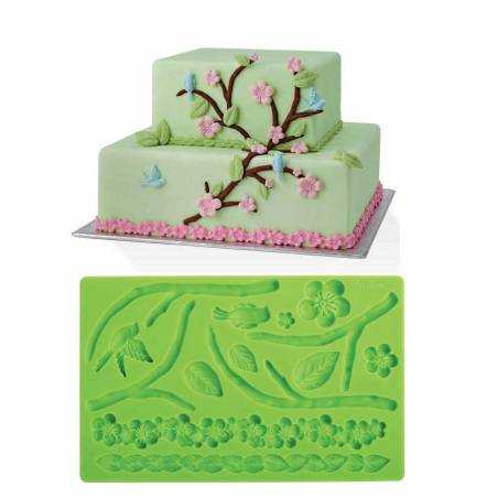 Molde em silicone com motivos de flores/raizes, tem cerca de 20x14cm. Ideal para trabalhar Pasta de Açúcar, não pode ir ao forno. Produto de qualidade marca Wilton.