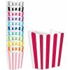 Emb. 5 caixas de papel com riscas brancas, com 13.4cm de altura x 7cm de comprimento base por 3.8cm de largura. Nota: escolha a cor nas opções. Ideal para colocar pipocas/doces.