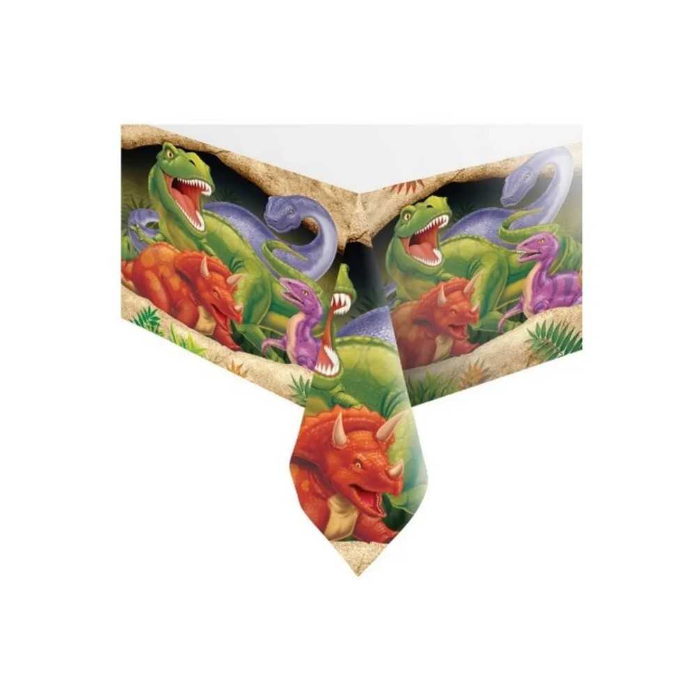 Emb. com uma toalha em plástico com 120 x 180cm, do tema O Bom Dinossauro. Nota: impressão apenas nas laterais, sendo o interior creme com dinossauros impressos nas cores verde e preto.