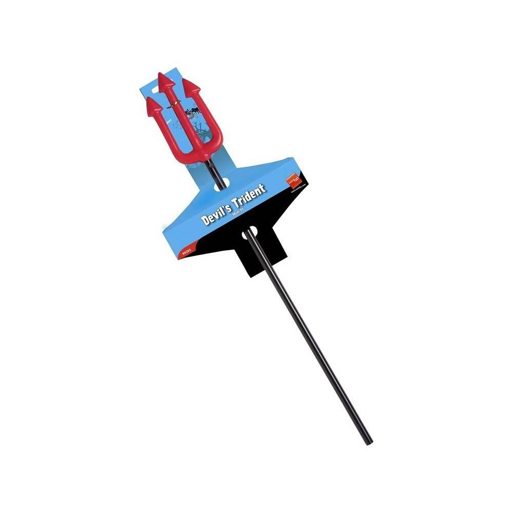 Emb. com um tridente pequeno de 58cm este tridente é de plástico , o seu cabo é preto sendo que a sua parte superior é vermelha.