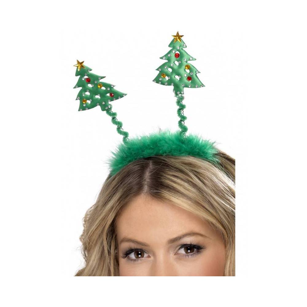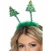 Bandelete verde com plumas na parte superior e com 2 arvores de Natal.