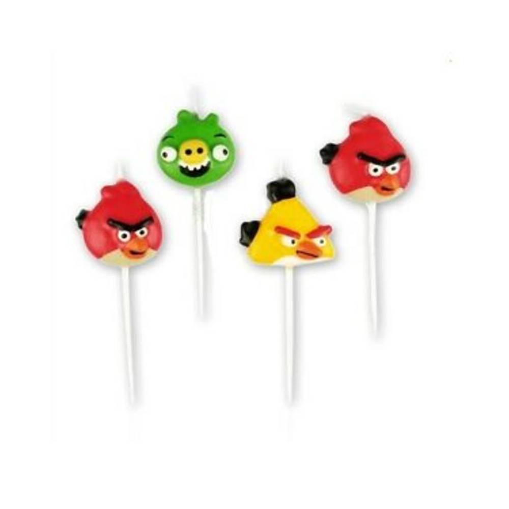 Emb. com 4 velas com 7cm alt. na forma da cabeça dos Angry Birds. Nota: Dispõem de um palito para fixar no bolo.