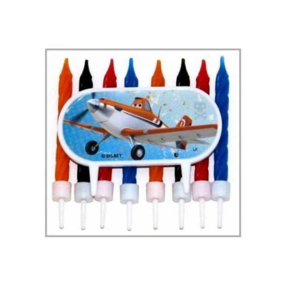 Emb. com 7 velas nas cores vermelho e azul claro com 7cm de altura + placa (não comestível) decorativa com impressão dos Aviões, placa dispõem de aplique para fixar no bolo. Ideal como decoração do seu bolo de festa.