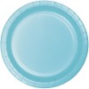 Emb. com 8 pratos na cor azul pastel em papel com 23cm de diâmetro. NOTA; as cores dos produtos em plástico podem divergir das cores dos produtos em papel.