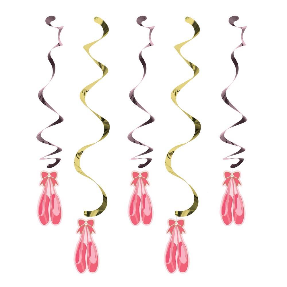 Emb. com 5 espirais em cores sortidas com sapatinhos de balé na extremidade - 3 com 76cm de altura - 2 com 99cm de altura do tema Bailarina.