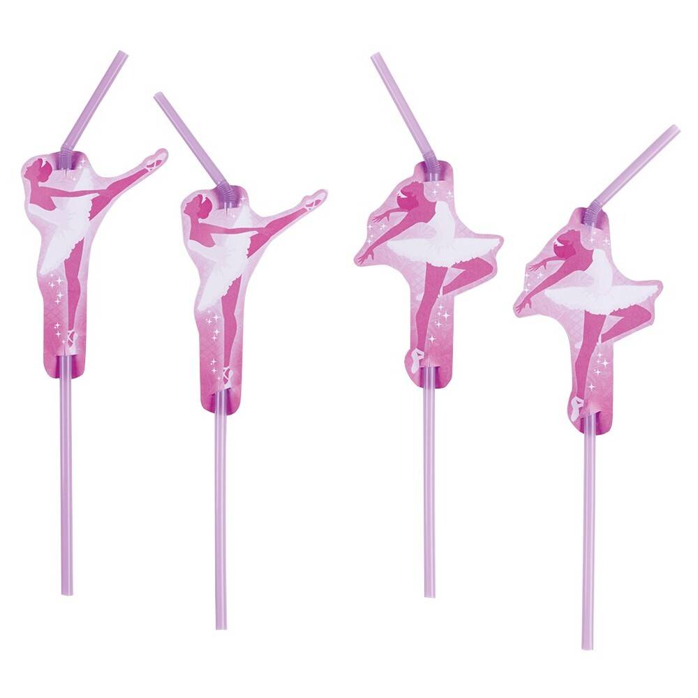 Emb. com 8 palhinhas lilás de plástico com imagens da Bailarina recortada em cartolina.