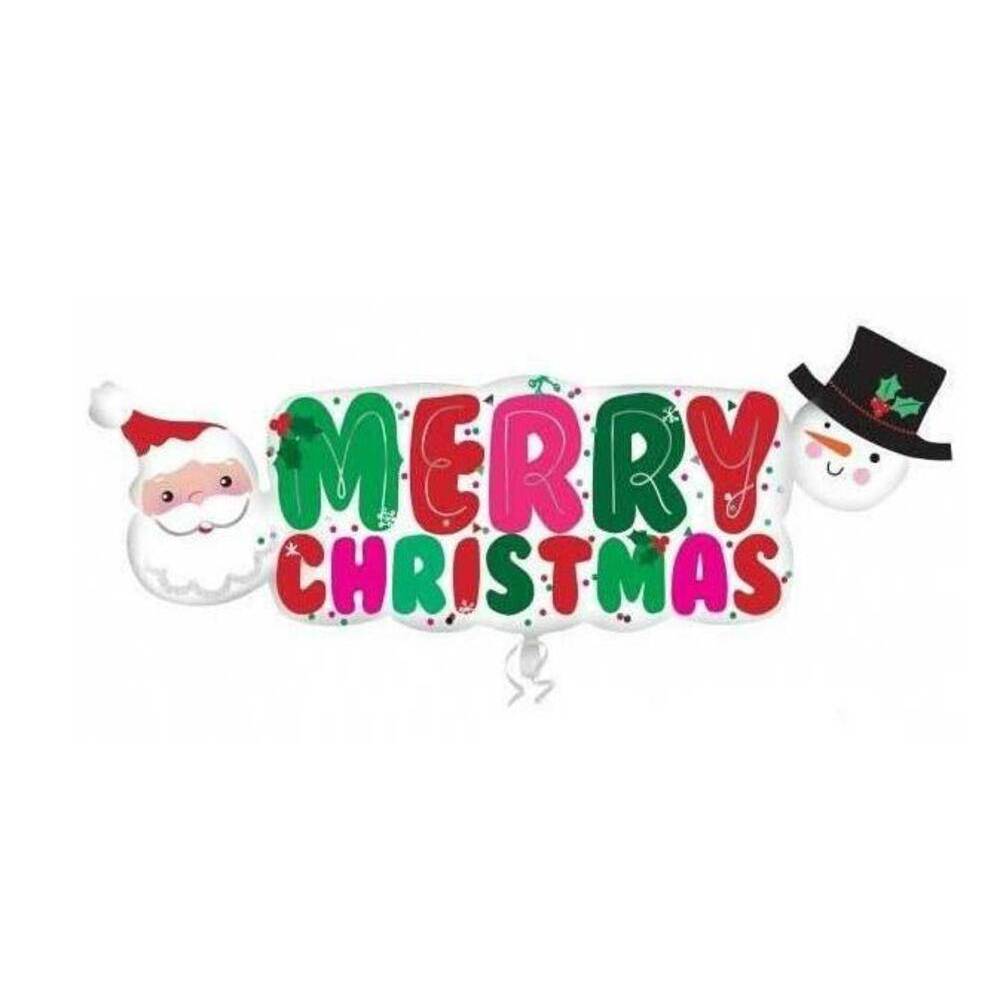 Emb. com um balão em folha de alumínio com a inscrição de Merry Christmas, balão com 40m alt. x 104cm comprimento. Nota: balão é vendido vazio para ser cheio com hélio.