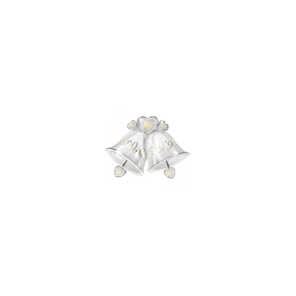 Emb. com um balão folha de aluminio com 66cm x 89cm em forma de sinos. Este balão é vendido vazio para ser cheio com hélio.