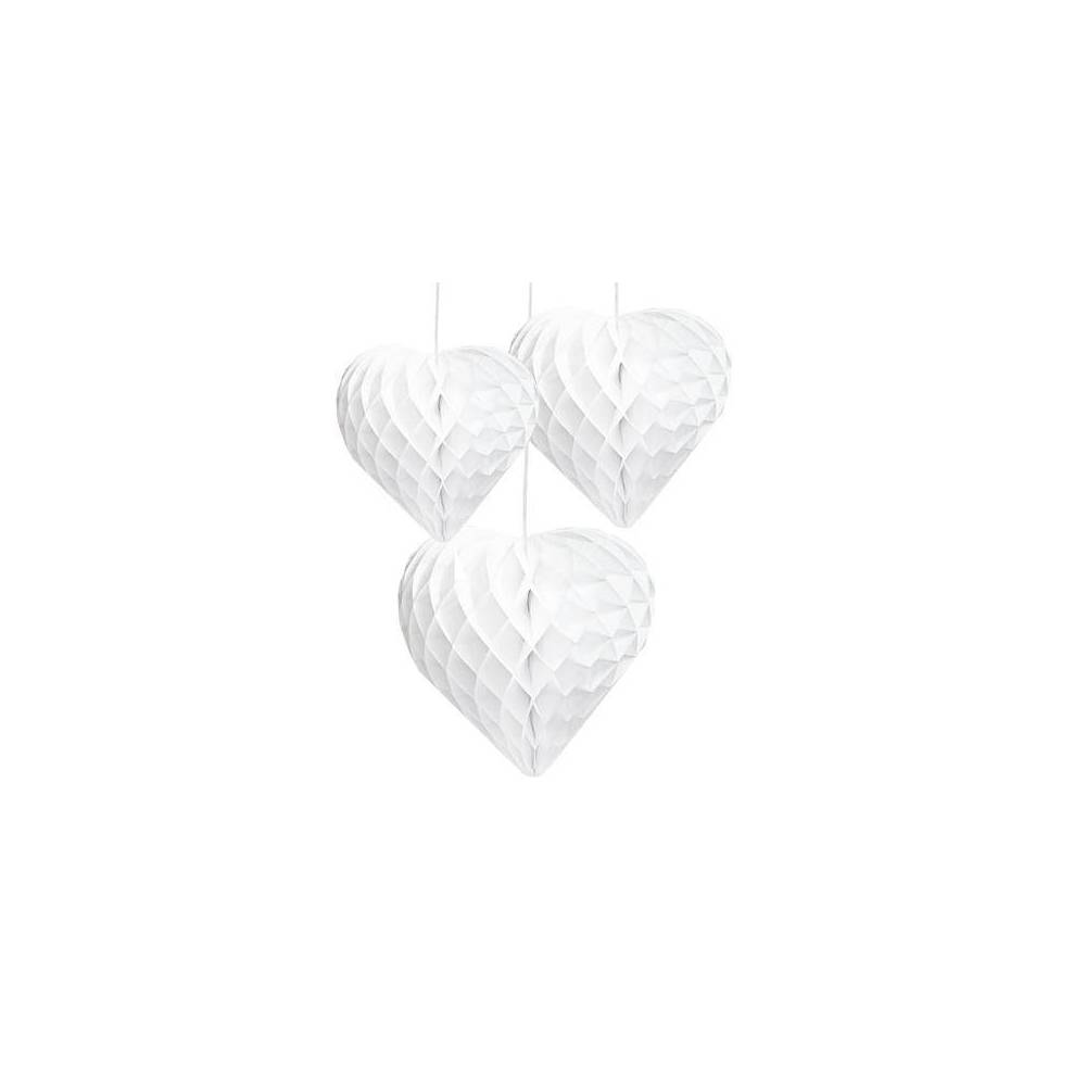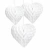Emb. com 3 balões (1x 20cm, 1x 25cm, 1x 30cm de diâmetro) em papel (casulo) na forma de coração na cor branca, inclui fios para aplicação.