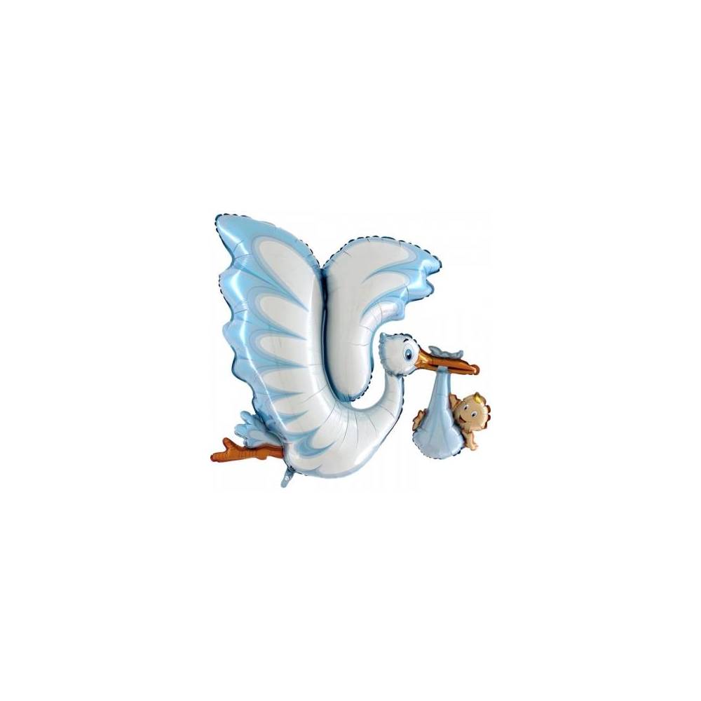 Emb. com um balão folha de alumínio na forma de Cegonha com bebé com 135cm. Nota: Balão é vendido vazio para ser cheio com hélio.