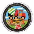 Emb. com uma faixa em papel com a palavra Happy Birthday (letras recortadas) e impressão do tema Construções, tem cerca de 2.20cm de comprimento por 18cm de altura. Ideal para a decoração do seu espaço de festa.