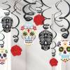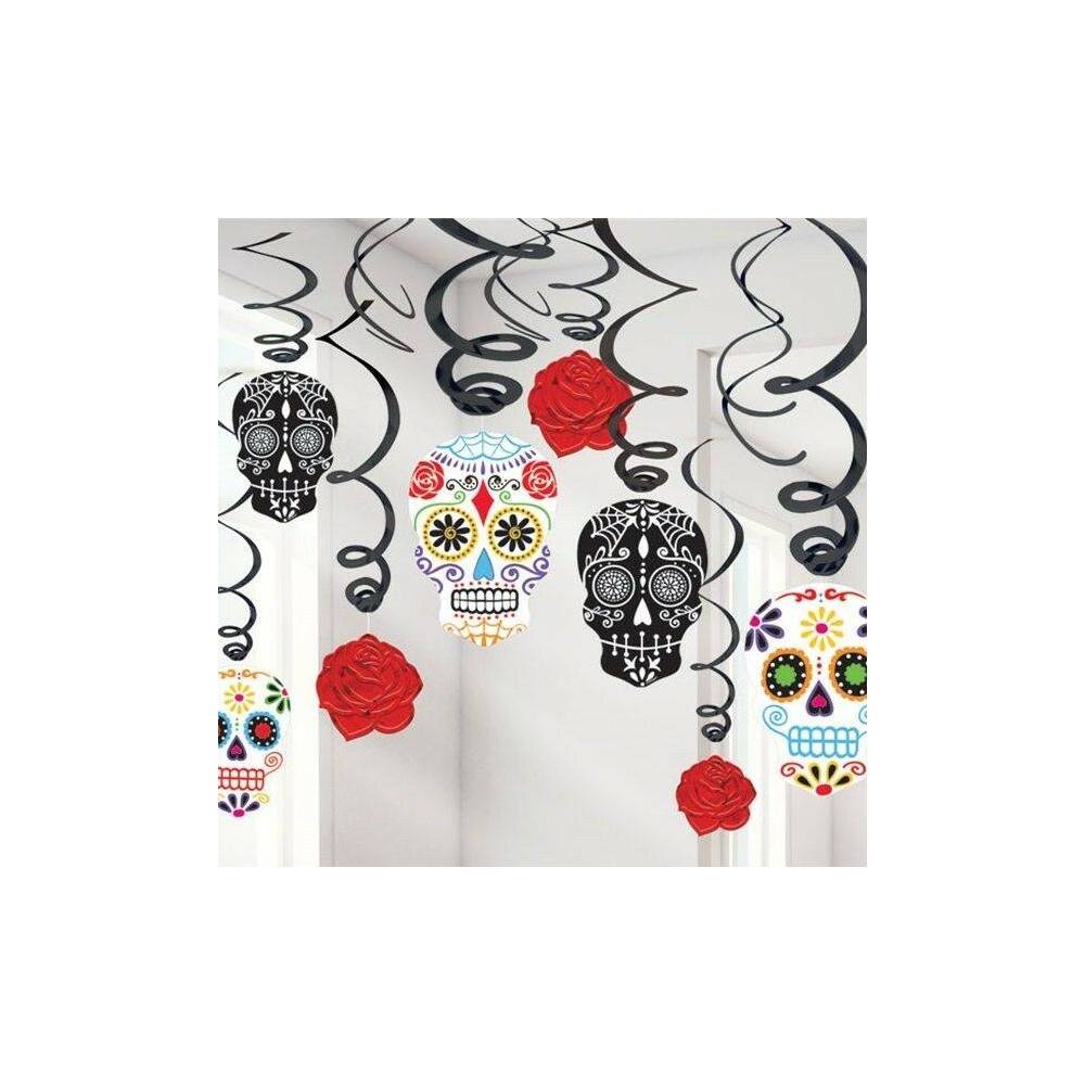 Emb. com 30 espirais decorativas cada uma com 60cm de comprimento : - 14 simples em preto - 16 com figuras recortadas em cartolina com caveiras coloridas + rosas, cada figura tem cerca 12 a 17cm. Ideal como decoração de teto.