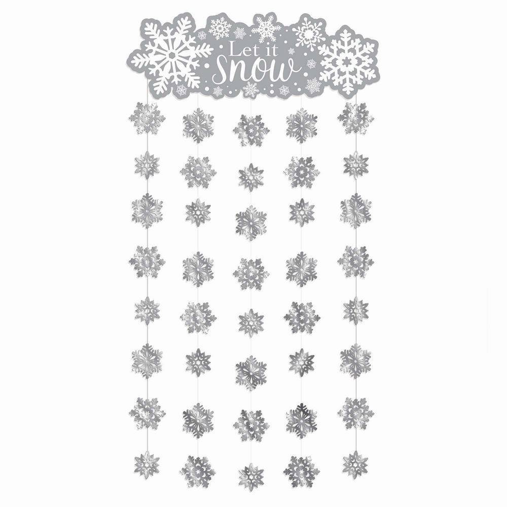 Emb. com uma cortina de porta que inclui 6 fios decorativos individuais cada com 2.13 m, ao logo de cada fio têm flocos de neve na cor branca e vermelha no topo tem uma faixa em verde com o texto "Seasons Greeting", ideal como entrada ou decoração de parede.