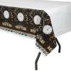 Emb. com uma toalha plástica de 137 cm de largura por 259cm de comprimento do tema Happy New Year. Impressão apenas nas laterais cendo que o interior é branco. Ideal para decoração da sua mesa de passagem de ano.