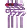 Emb. com 12 palhinhas loucas na cor roxa em plástcio rijo, com imagens de halloween (aranhas, caveiras)