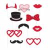 Kit fotográfico em papel que inclui: - óculos coração, bigode, chapéu, lábios, entre outros todos com palhinha como suporte. Ideal para tirar fotos em casamentos, festas temáticas.