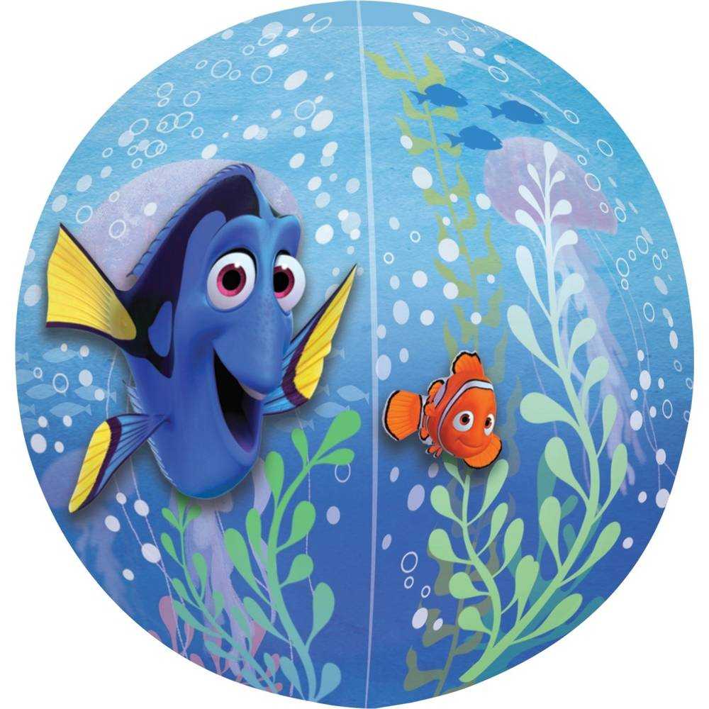 Emb. com um balão folha de alumínio em redondo com 4 lados (tipo bola de praia) tem cerca 38 de diâmetro, tem impressão do tema Dory nas superfícies. Nota: Balão vendido vazio para ser cheio com hélio