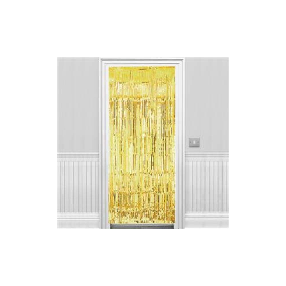 Emb. com uma cortina decorativa dourada metalizado com 91cm de comprimento por 2.40m de altura. Ideal para decoração de portas, fundos de parede.
