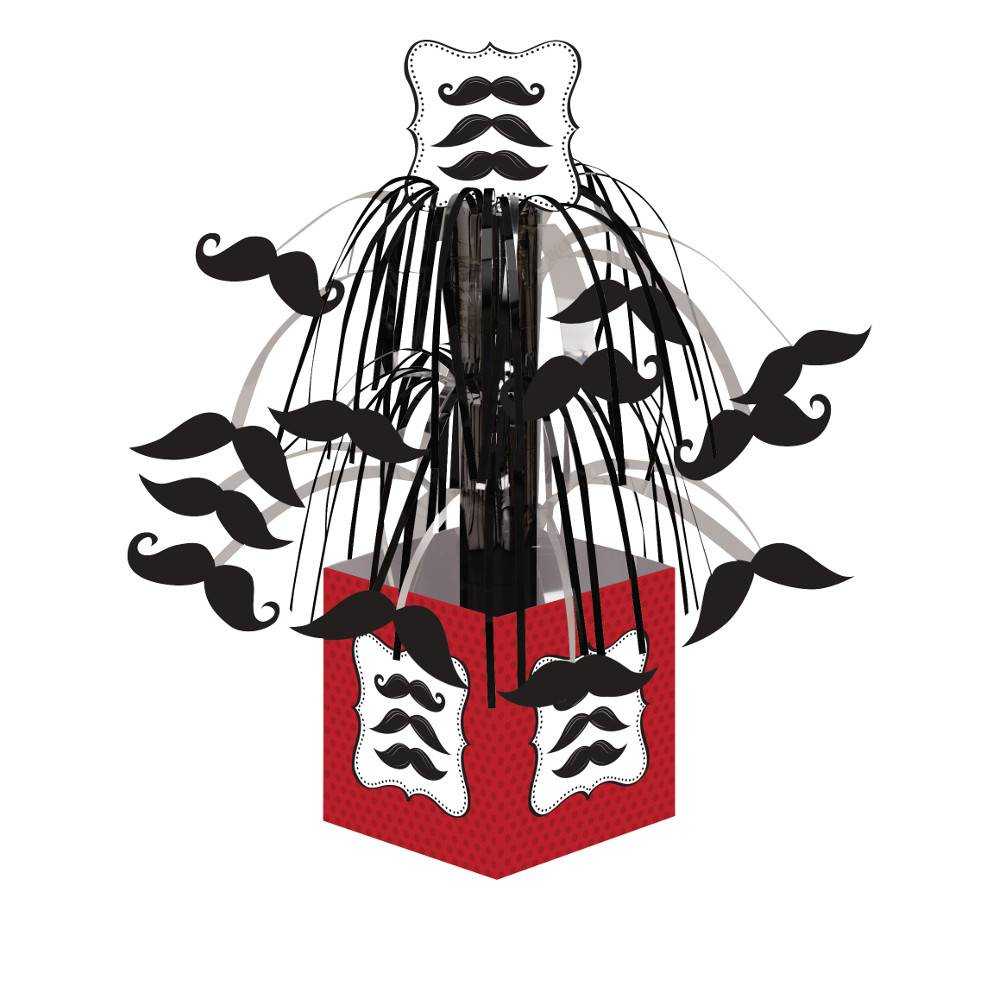 Emb. com um centro de mesa com 21cm de altura, base quadrada em papel, do tema Festa do Bigode.
