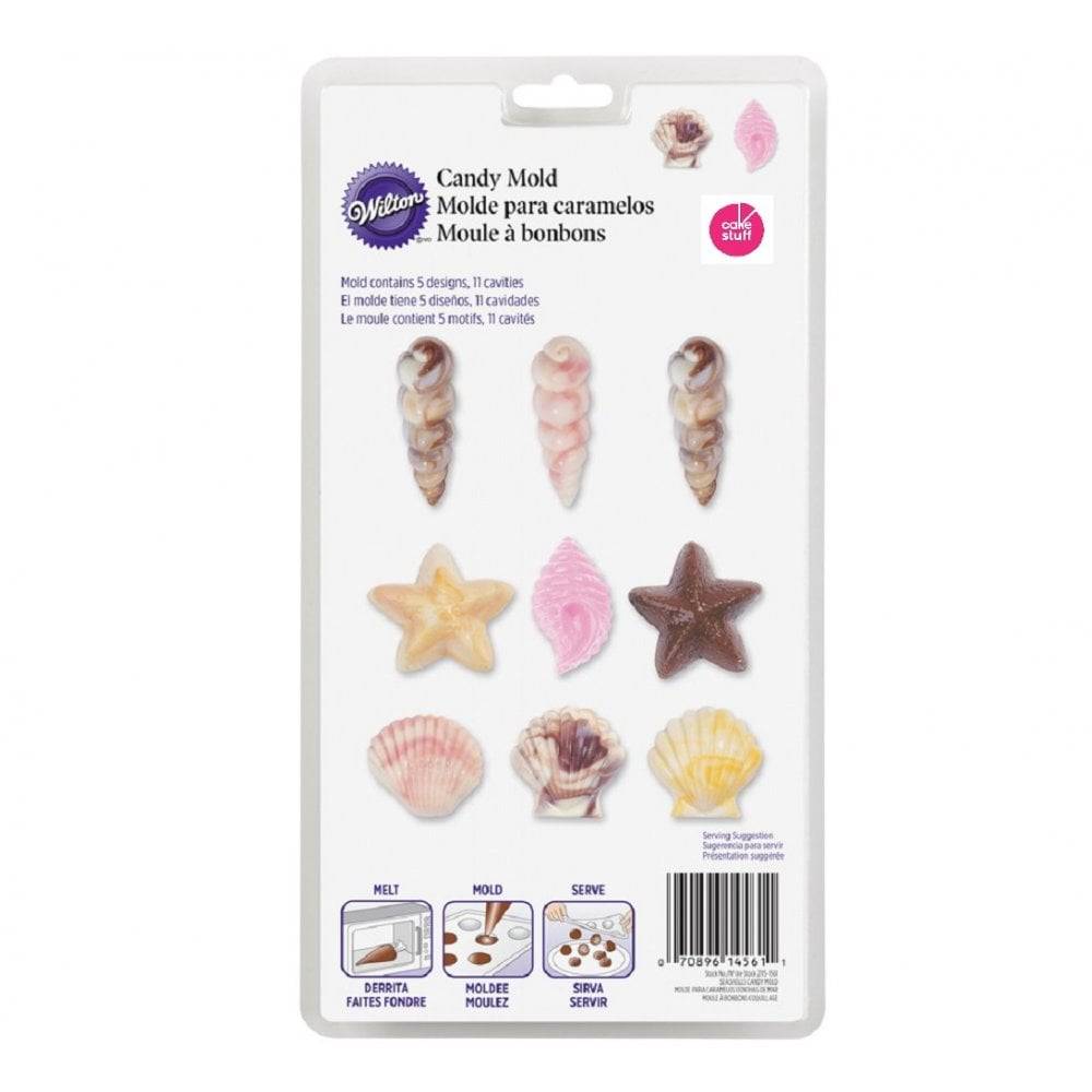 Molde em plástico do tema fundo do mar, com 11 cavidades, com tamanhos entre 4x8cm ou 7x7cm por 1cm de profundidade. Ideal para fazer chupas de chocolate, não pode ir ao forno.