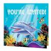 Emb. com 8 convites (texto em Inglês: date, for, time...) e seus respectivos envelopes, do tema Fundo do Mar.