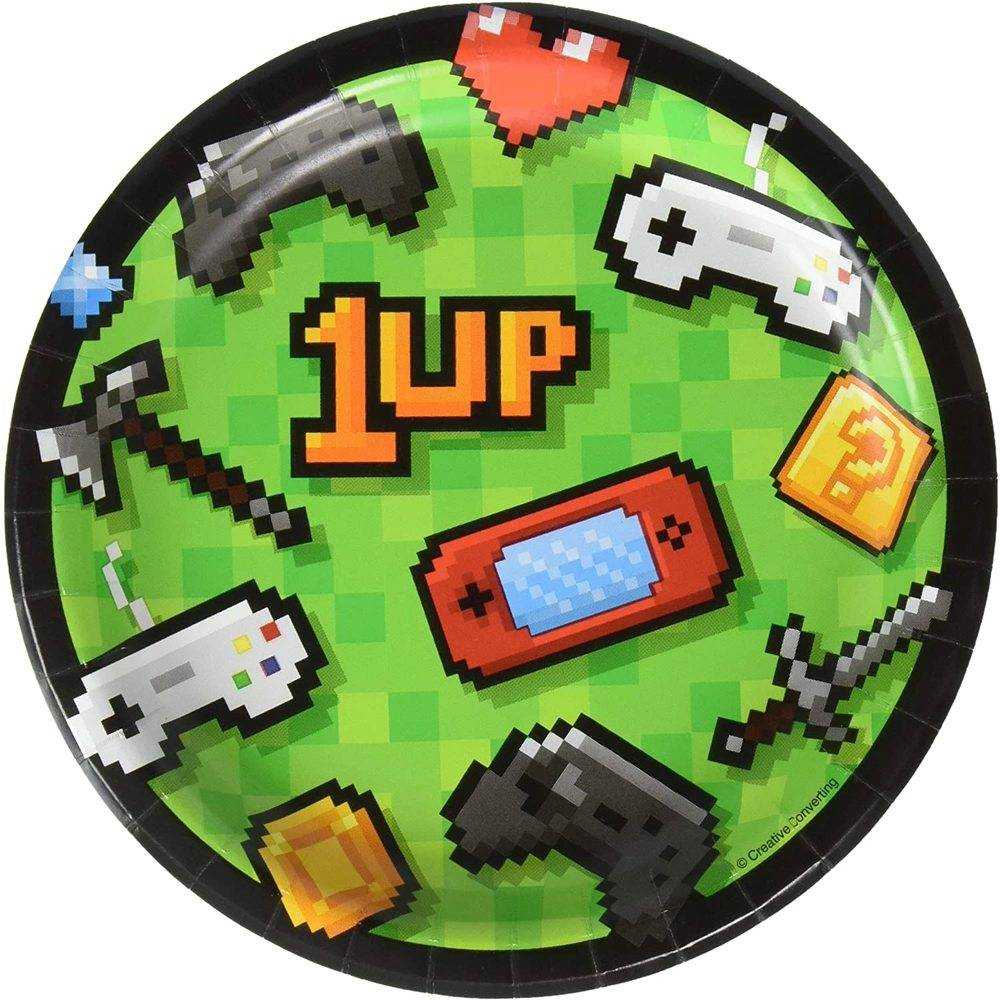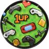 Emb. com 8 pratos em papel de 18cm, do tema Game On.
