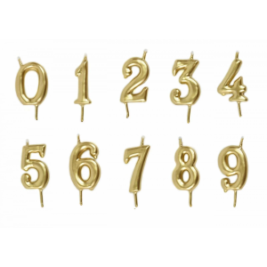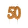 Emb. com uma vela de 50 anos na cor dourada e branca com 7cm x 7cm.