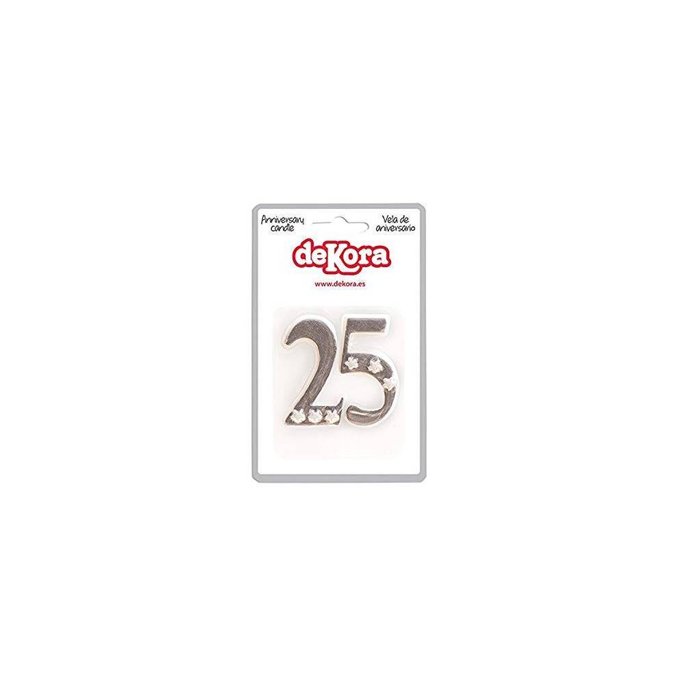 Emb. com uma vela de 25 anos na cor prata e branca com 7cm x 7cm.