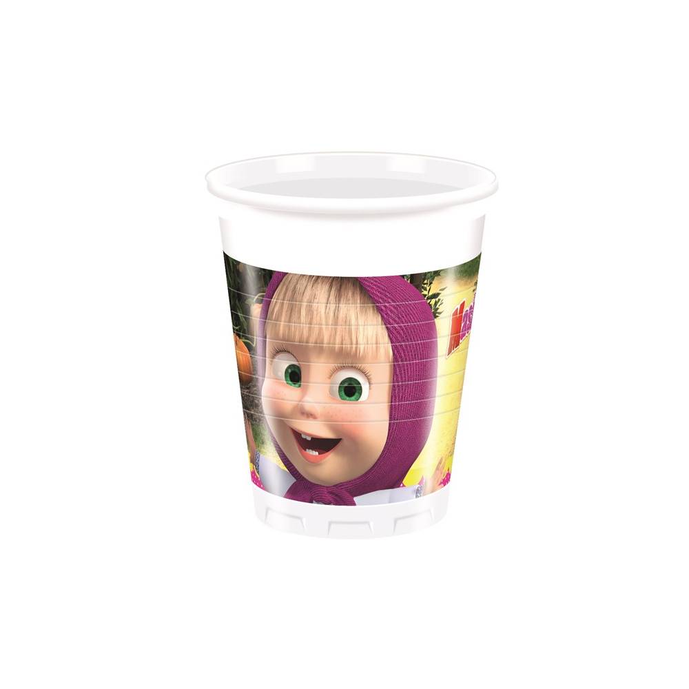 Emb. com 8 copos em plástico de 200ml, do tema Masha e o -Urso.