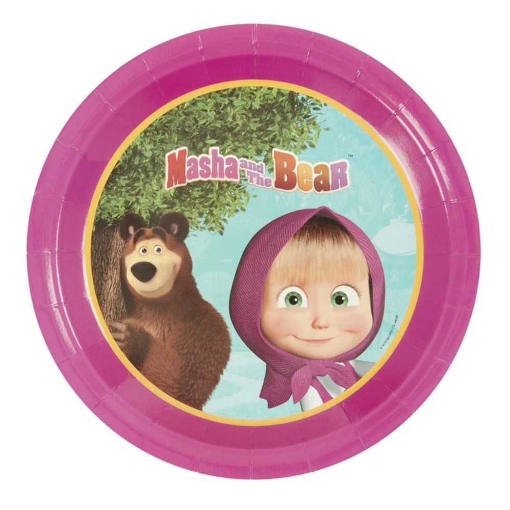 Emb. com 8 pratos de papel com 23cm de diâmetro do tema Masha e o Urso.