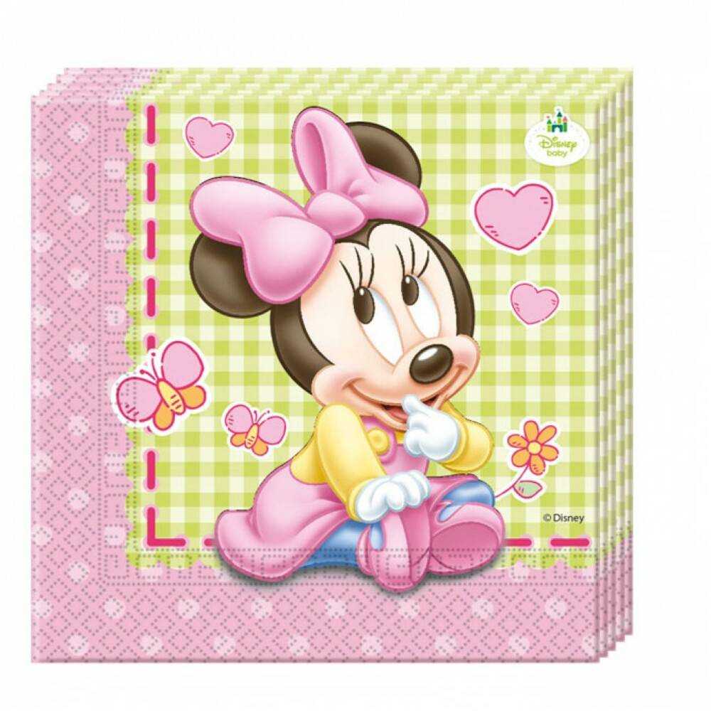Emb. com 20 guardanapos em papel com 33cm x 33cm, do tema Minnie bebé. Nota: cor da imagem pode divergir do produto original.