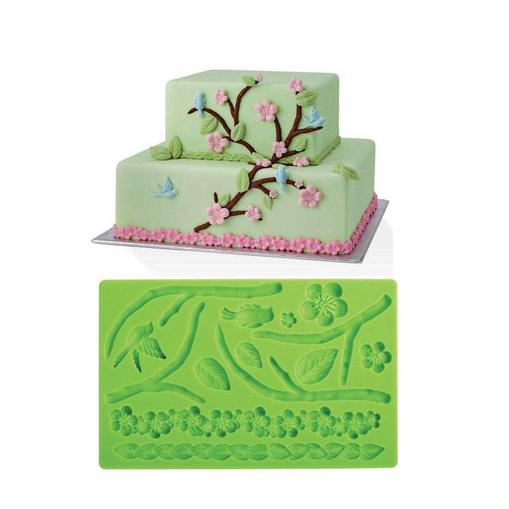 Molde em silicone com motivos de flores/raizes, tem cerca de 20x14cm. Ideal para trabalhar Pasta de Açúcar, não pode ir ao forno. Produto de qualidade marca Wilton.