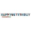 Emb. com uma faixa com a palavra Happy Birthady (letras recortadas) cada letra tem cerca de 25cm de altura inclui números de 0 a 9 repetidos 2 vezes para personalizar o centro da faixa com a idade da aniversariante. Faixa com 3.20m de comprimento tudo em cartão com impressão do tema Os Incríveis.