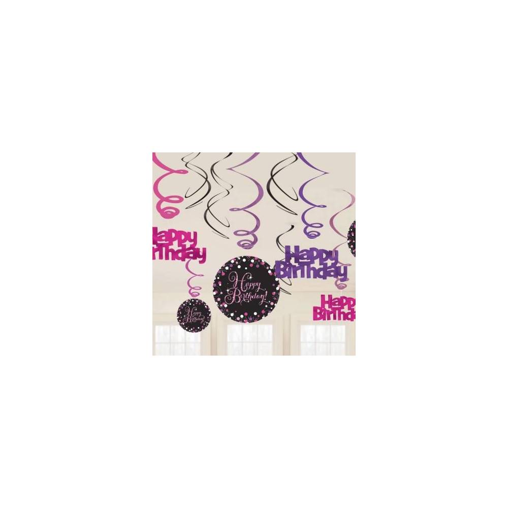 Emb. com 12 espirais com 60cm de comprimento cada: - 6 simples cores sortidas. - 3 com o Happy Birthday recortado ( 17cm ) na extremidade . - 3 com Happy Birthday (12cm ) recortadas na extremidade. Ideal como decoração de tecto.