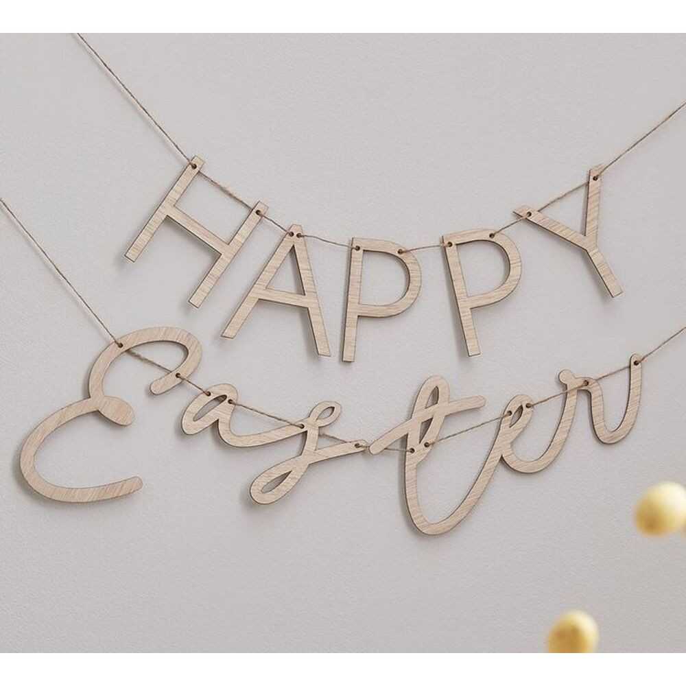 Emb. com uma faixa em papel com a palavra Happy Easter (letras recortadas) e com coelhos de Páscoa com 3mt de comprimento x 11cm de altura, sendo que os coelhos laterais tem 18cm de altura Ideal para a decoração do seu espaço de festa.
