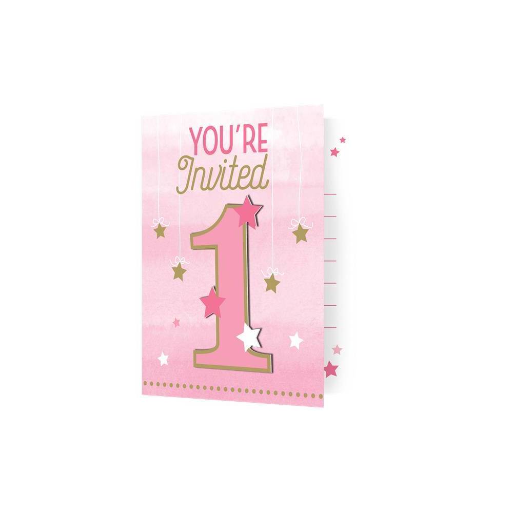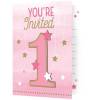 Emb. com 8 convites + respectivos envelopes do tema Pequena Estrela Menina. Nota: inclui nº 1 recortado para aplicar na frente do convite em relevo. Não dispõem de texto.