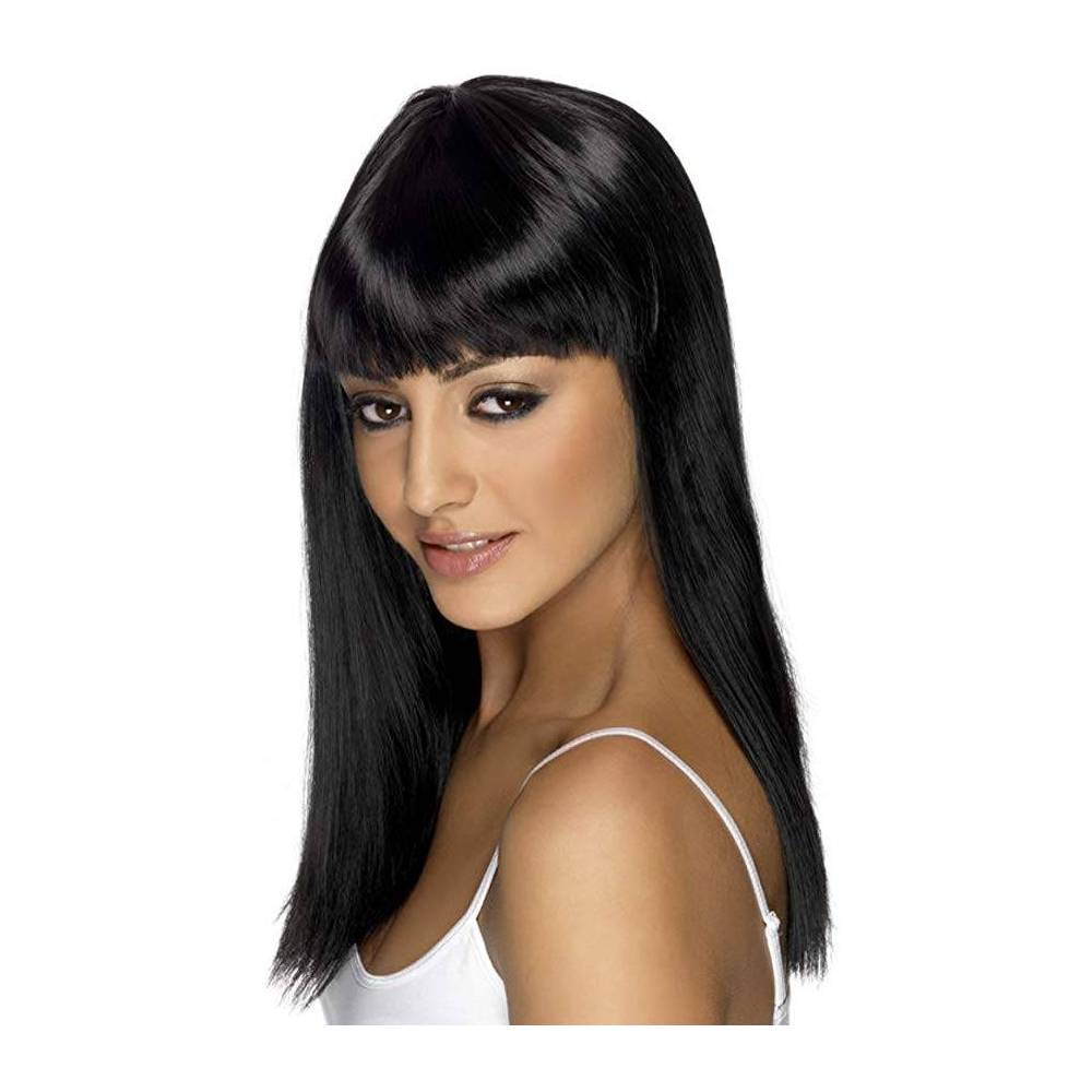Peruca comprida lisa na cor preta.