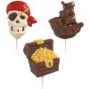 Molde em plástico do tema piratas, com 3 cavidades tem cerca de 7x7cm por 1cm de profundidade. Ideal para fazer chupas de chocolate, não pode ir ao forno.
