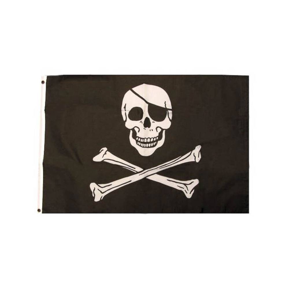 Bandeira de pirata em tecido com 152cm de comprimento x 91cm de altura.